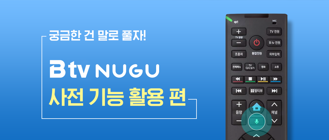 B tv 고객이라면 리모컨을 통해 인공지능 서비스 NUGU를 즐길 수 있는 B tv NUGU.