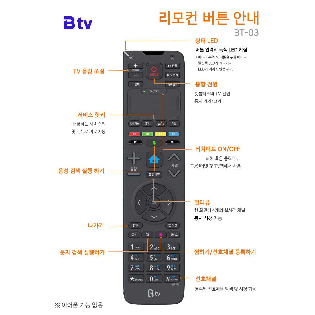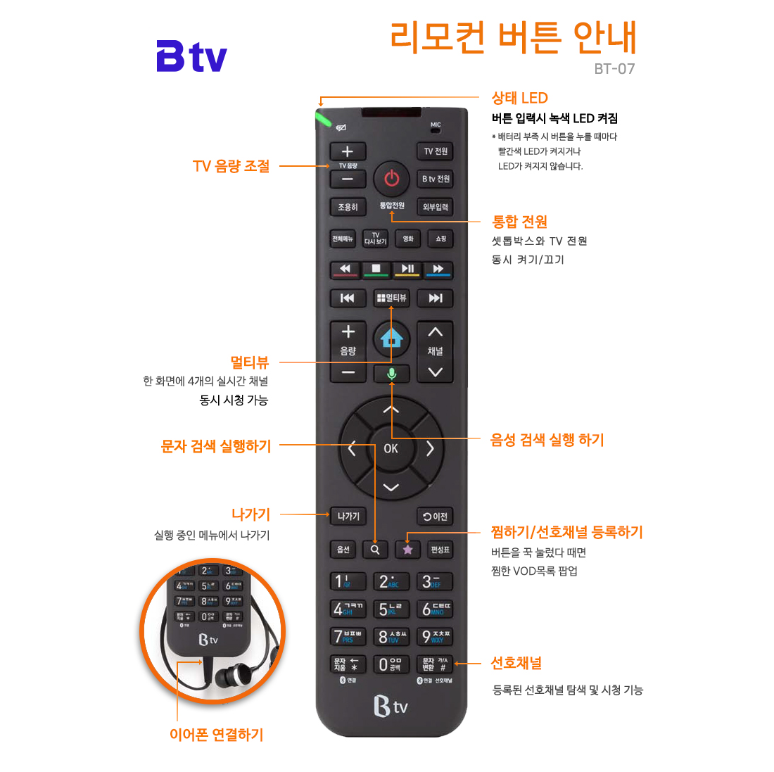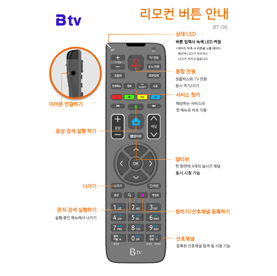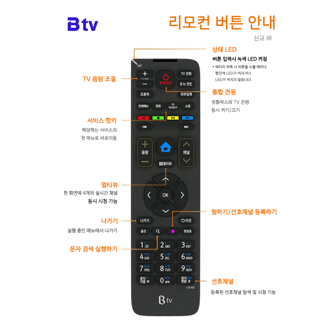 # B tv HD 셋탑 리모컨 버튼 안내