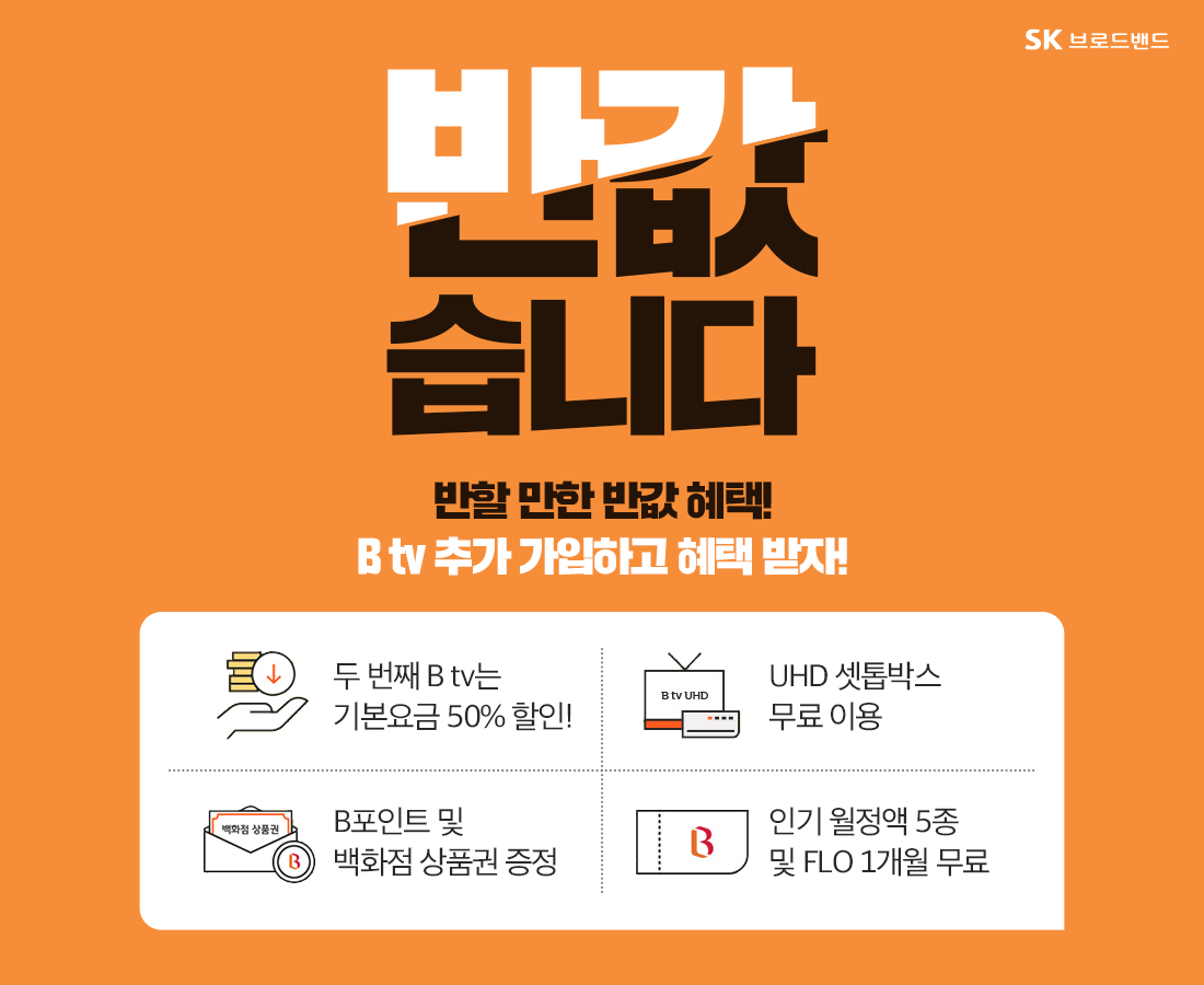 반값으로 안방에 B tv 하나 더! 추가 가입 고객님에게 드리는 특별한 혜택 4가지!