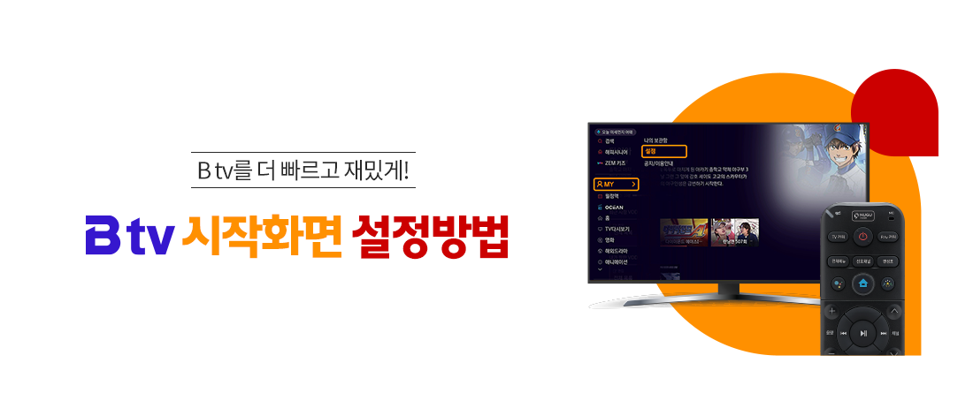 시작화면 선택이 고민되신다면, TV를 켜자마자 보고 싶은 콘텐츠를 바로 볼 수 있는 B tv 홈으로 선택해보세요!