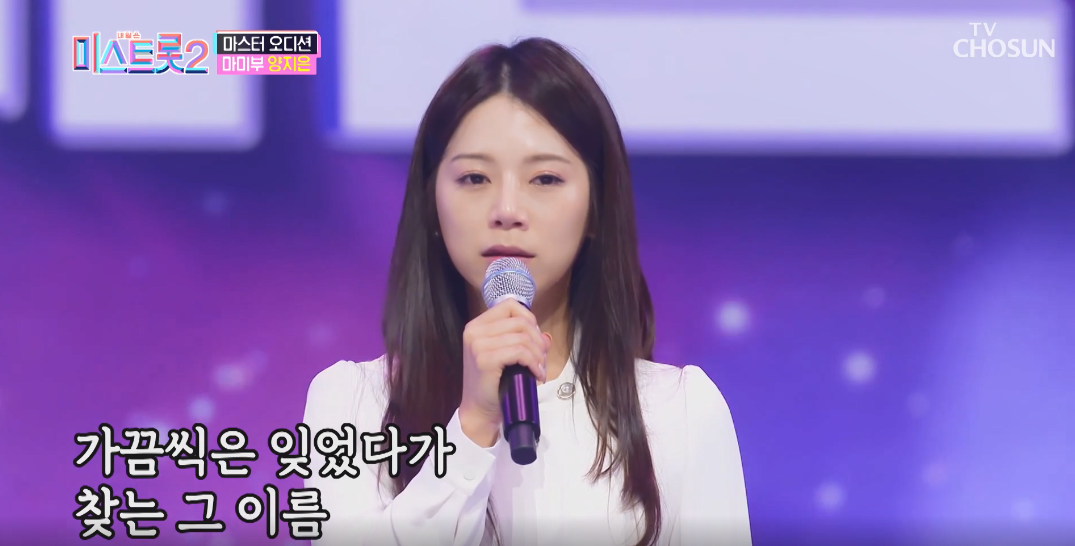 ‘제주댁’ 양지은은 <미스트롯 2> 3회 ‘마스터 오디션’에서 ‘마미부’의 마지막 참가자로 처음 모습을 보였습니다.
