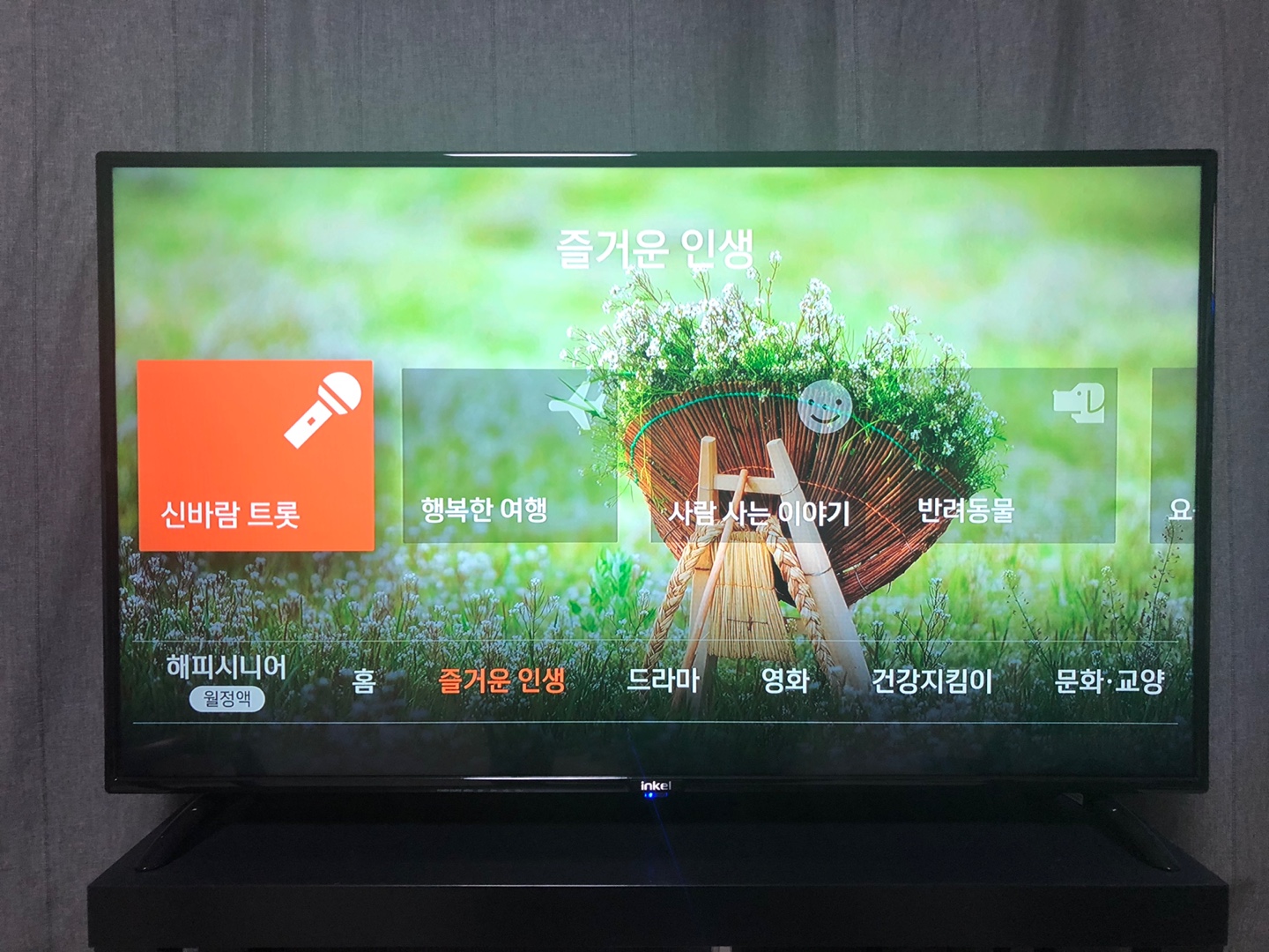 선물 받은 VOD는 부모님 집 TV의 ‘해피시니어’ 메뉴에 있는 영화∙방송 선물함에 들어가 볼 수 있는데, 이 해피시니어란 메뉴는 큰 글씨로 돼 있어서 무엇보다도 우리 엄마 아빠에게 편리함을 주었다. 눈이 나쁜 부모님은 얼마 전 전화 통화로 말씀하시길 “글자를 시원시원하게 볼 수 있어서 나는 그게 제일 좋더라”고 말씀하시기도 했다.