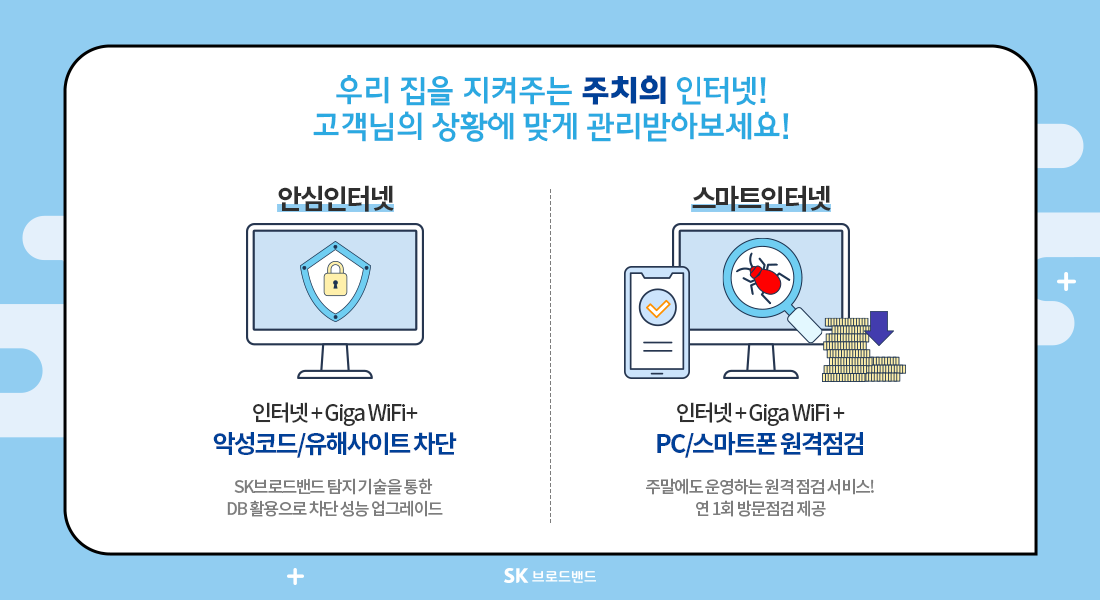 그렇다면, SK브로드밴드의 안심인터넷을 추천드립니다!