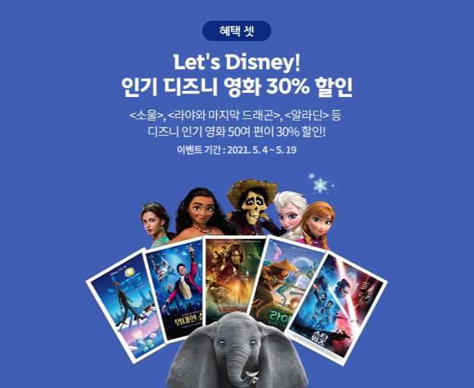 인기 디즈니 영화 30% 할인 (5/4~5/19)