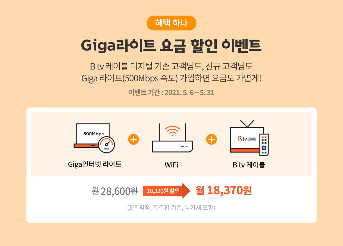 Giga라이트+WiFi 요금제 할인 이벤트 (5/6~5/31)