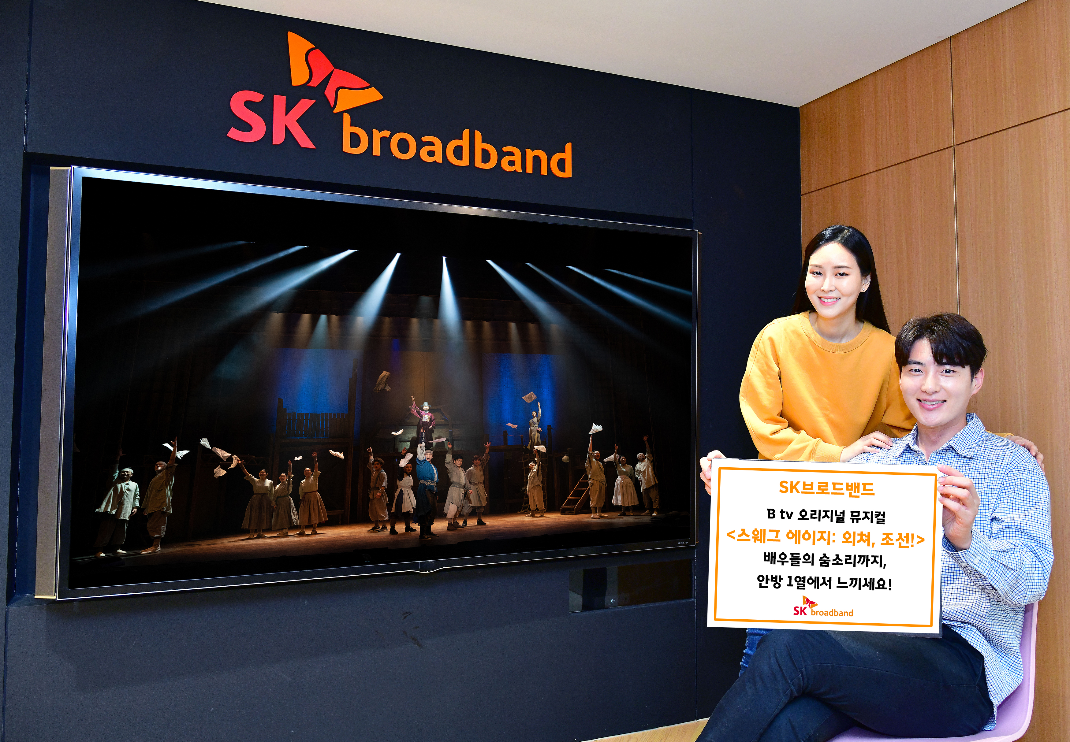 SK브로드밴드(대표이사 사장: 최진환, www.skbroadband.com)는 국내 순수 창작 뮤지컬 <스웨그에이지: 외쳐, 조선!>의 공연 실황을 B tv VOD를 통해 선보인다고 26일 밝혔다. 국내 창작 뮤지컬을 오리지널화해 제공하는 건 IPTV 업계 최초다.