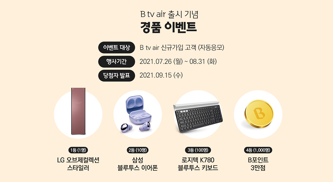 B tv air 신규 가입 개통 고객이라면 자동 응모!