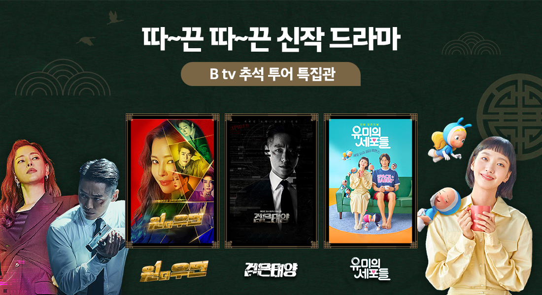 | [B tv 추석 방송 편성작] 추석 연휴에 몰아보기 딱 좋은 최신 인기 무료작부터 추석에만 볼 수 있는 방송사 특집/파일럿 프로그램까지! (0) | 2021.09.20 |