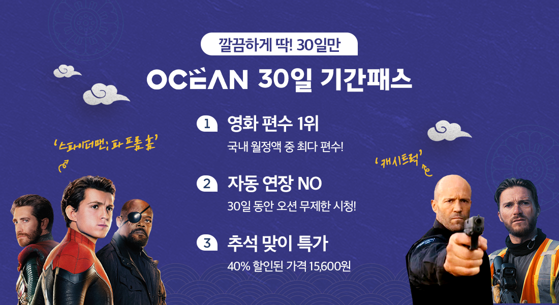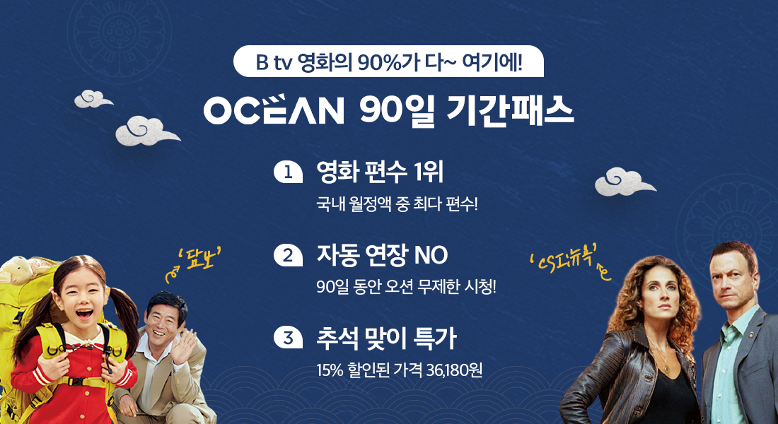 이번 추석 연휴, B tv가 준비한 특별 할인가로 영화 월정액 OCEAN 기간패스를 만나보세요!