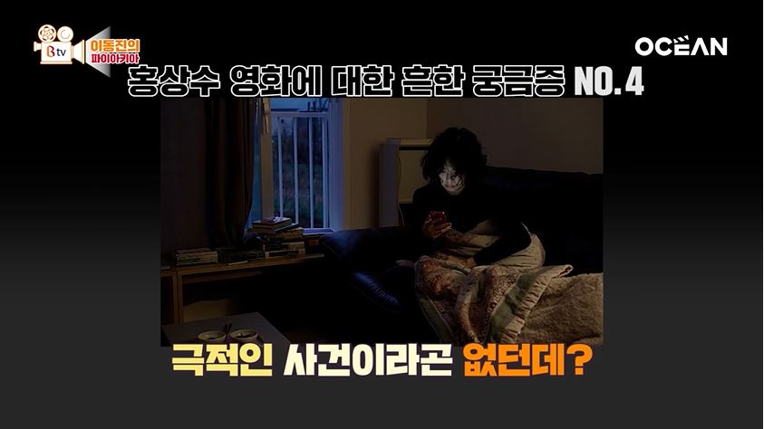 따라서 이동진 평론가는 ‘에피소드 나열식의 구성이 홍상수 영화의 기본적인 핵심이 될 수 있다’고 봤습니다. 그것 자체가 홍상수 감독만의 세계관이자 예술관이기 때문이죠.