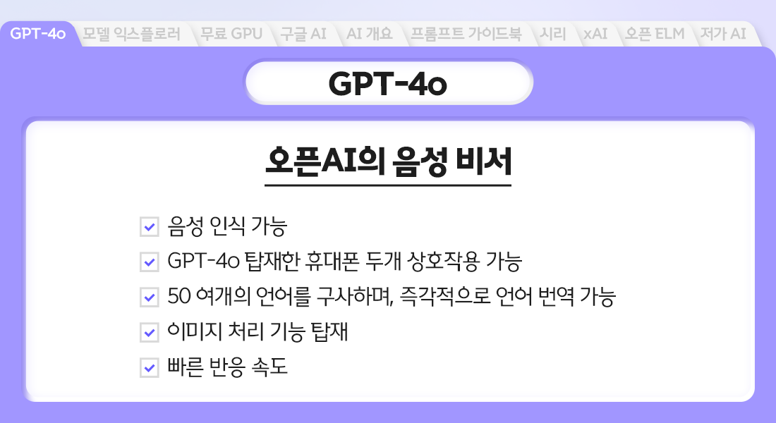새 모델의 'o'는 모든 것이라는 '옴니(omni)'를 뜻하며, 정식 출시는 몇 주 안에 이뤄질 예정이다.