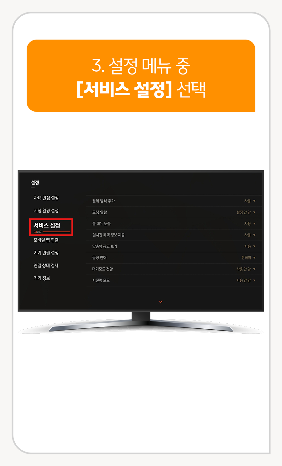 3. 설정 메뉴 중 [서비스 설정] 선택