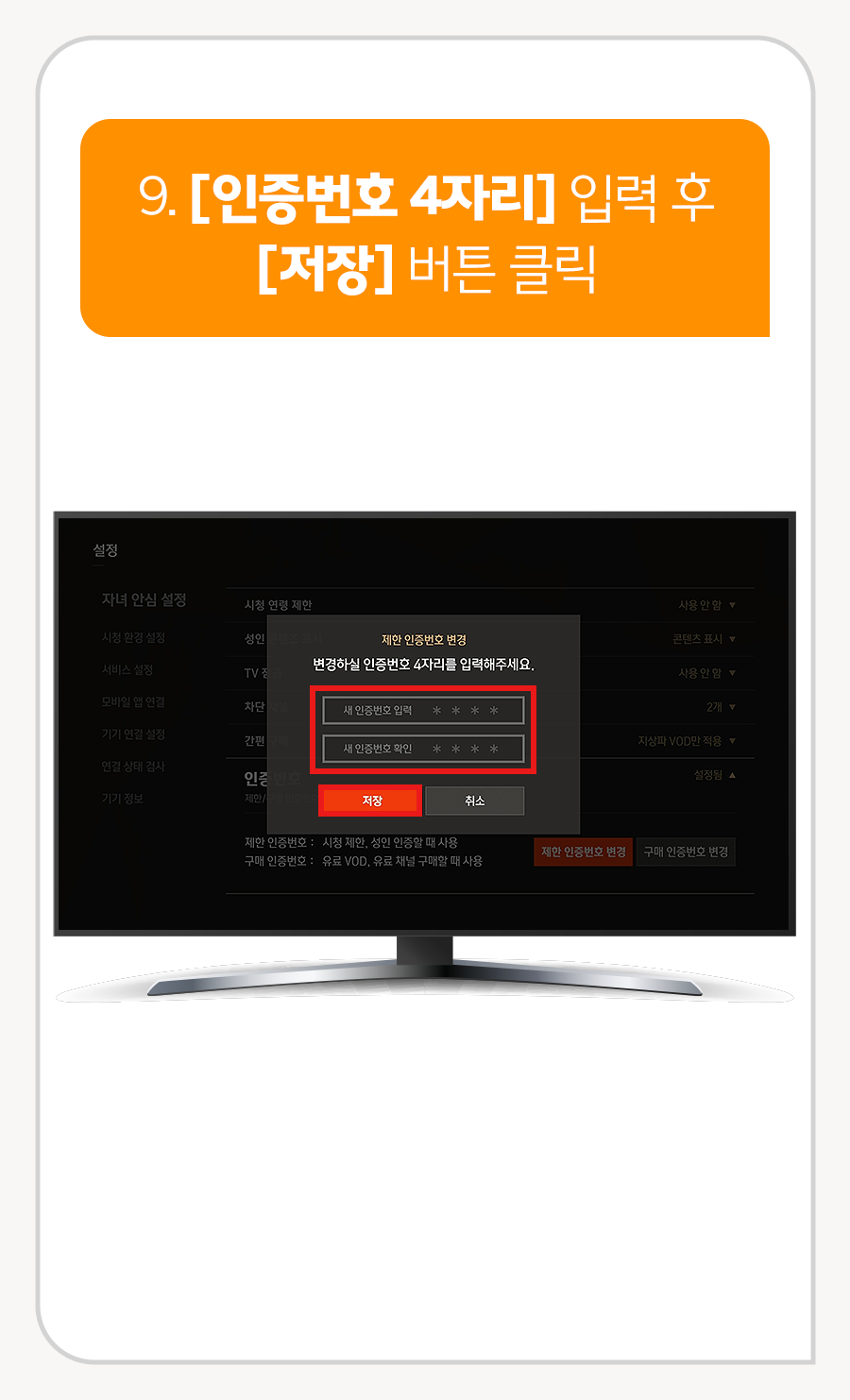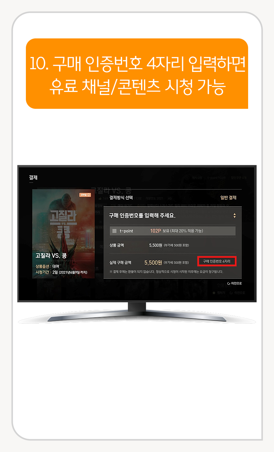 10. 구매 인증번호 4자리 입력하면 유료 채널/콘텐츠 시청 가능