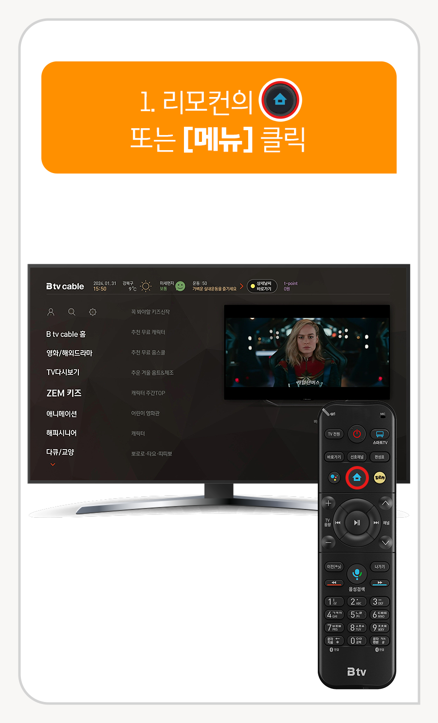 1. 리모컨 홈 버튼 또는 [메뉴] 클릭