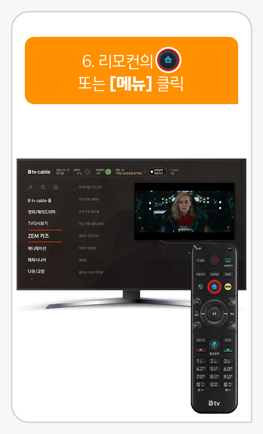 6. 리모컨 홈 버튼 또는 [메뉴] 클릭