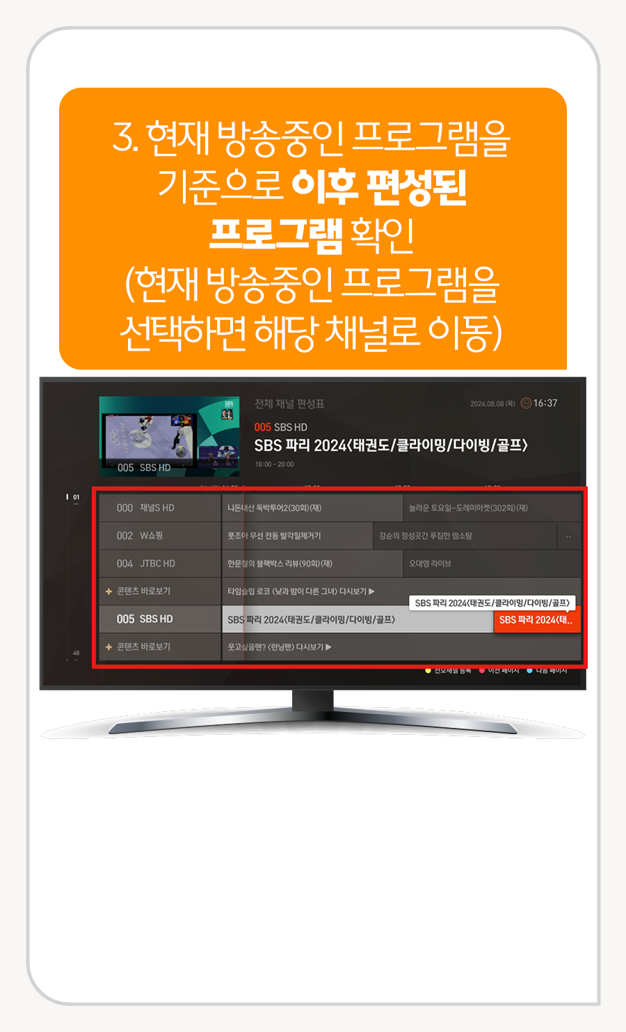 3. 현재 방송중인 프로그램 기준으로 이후 편성된 프로그램 확인