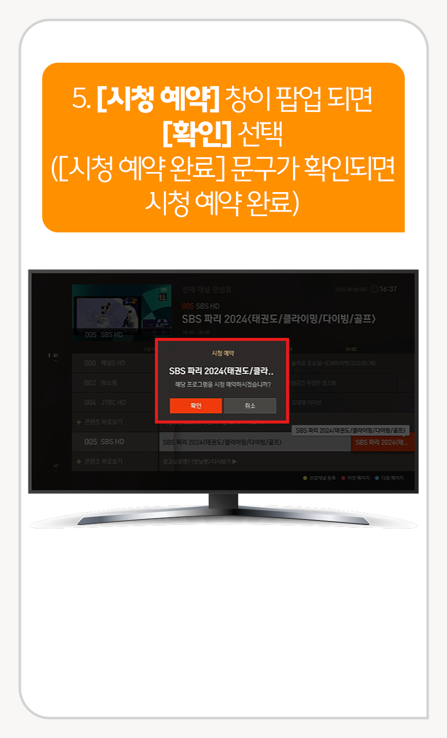5. [시청 예약] 창이 팝업되면 [확인] 선택