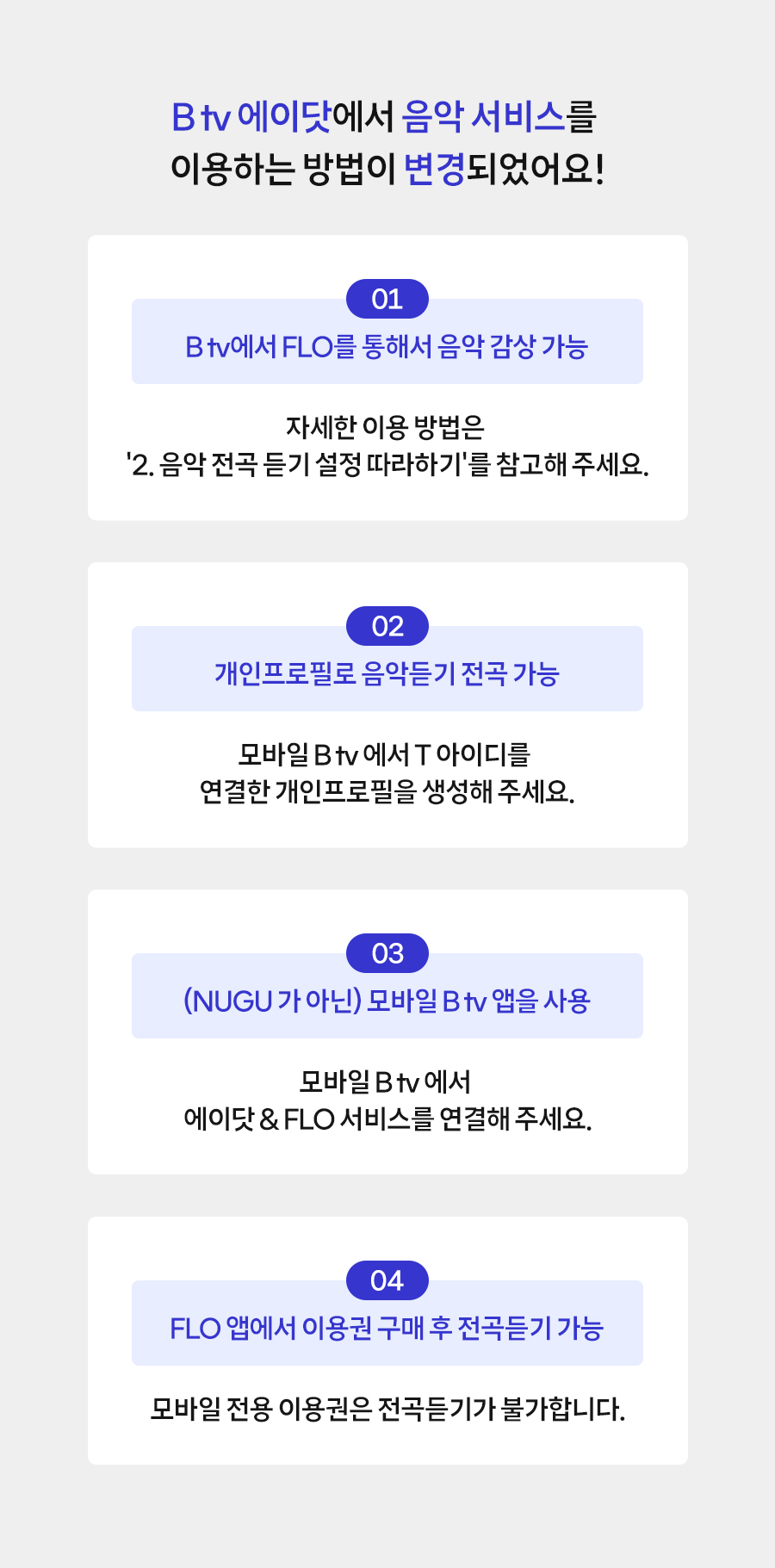 ✅ B tv에서 FLO를 통해서 음악 감상 가능