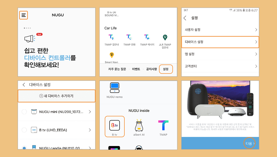 2) B tv에서 NUGU 연결하기