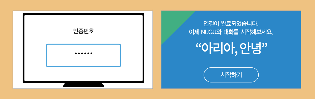 마지막으로 B tv 화면에 나타난 인증번호 6자리를 NUGU 앱에 입력하시면 연결이 완료됩니다.