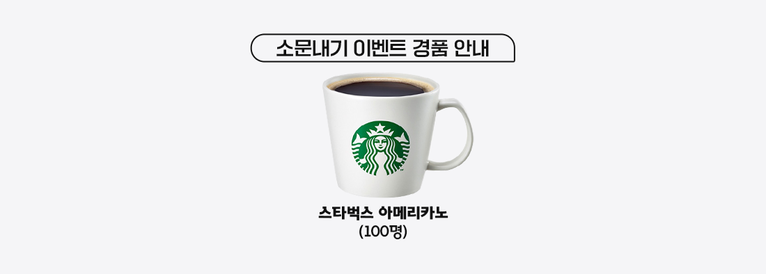 이벤트 경품으로 무려 100명을 위한 스타벅스 아메리카노 기프티콘이 준비되어 있어요.