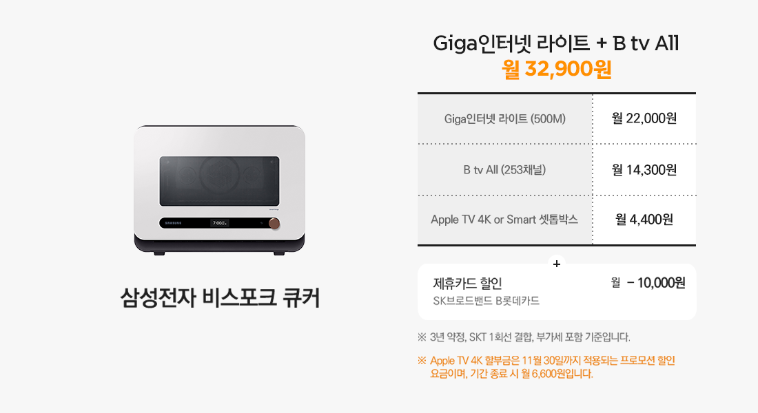 SK브로드밴드 B롯데카드 할인과 Apple TV 4K 프로모션은 동일하게 적용됩니다.