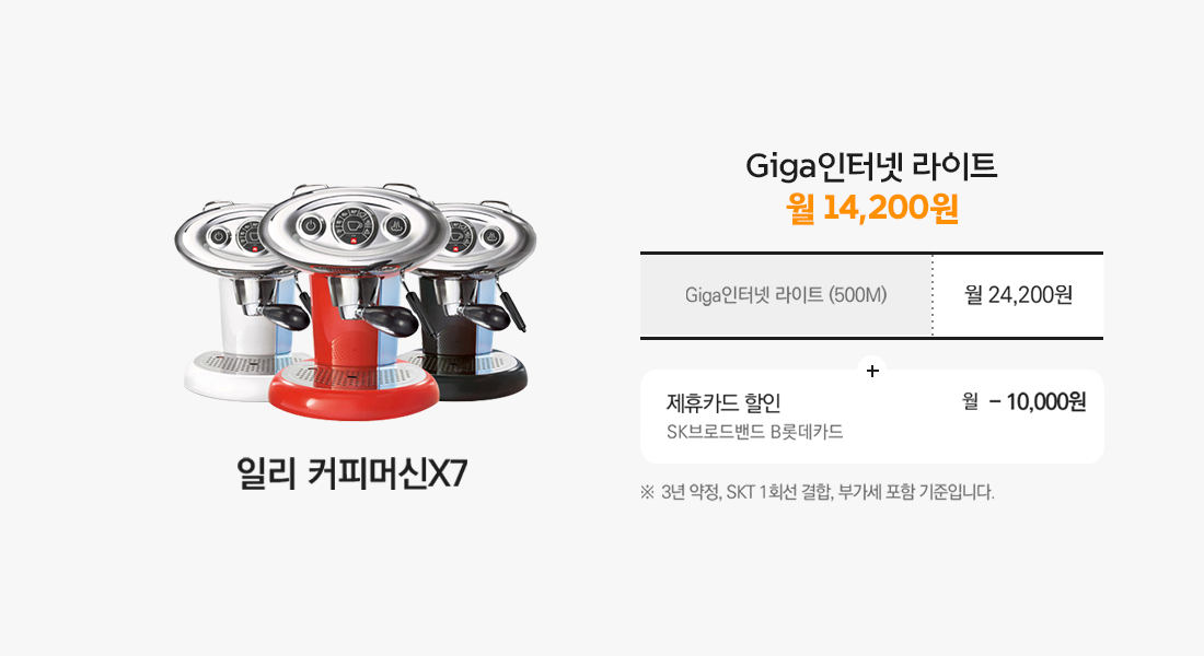 월 14,200원으로 저렴하게 500M 인터넷 이용하시고, 분위기 있는 커피 라이프를 즐겨 보세요.
