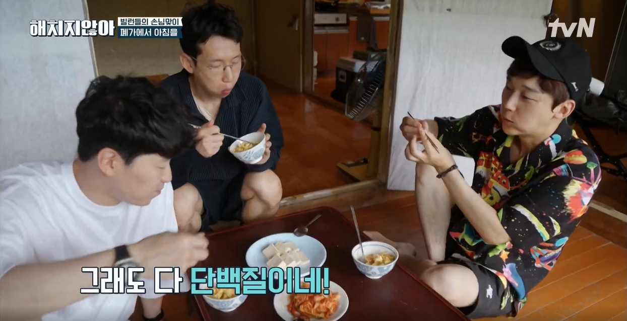 3인방은 말도 없이 밥 먹으며 멍 때렸을 정도로 많이 지쳐 보였죠.