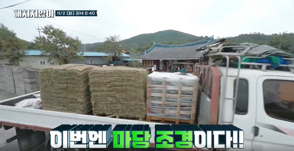 3인방의 노동과 게스트의 노동이 더해져서 어느덧 마당에는 잔디가 깔리고 집은
