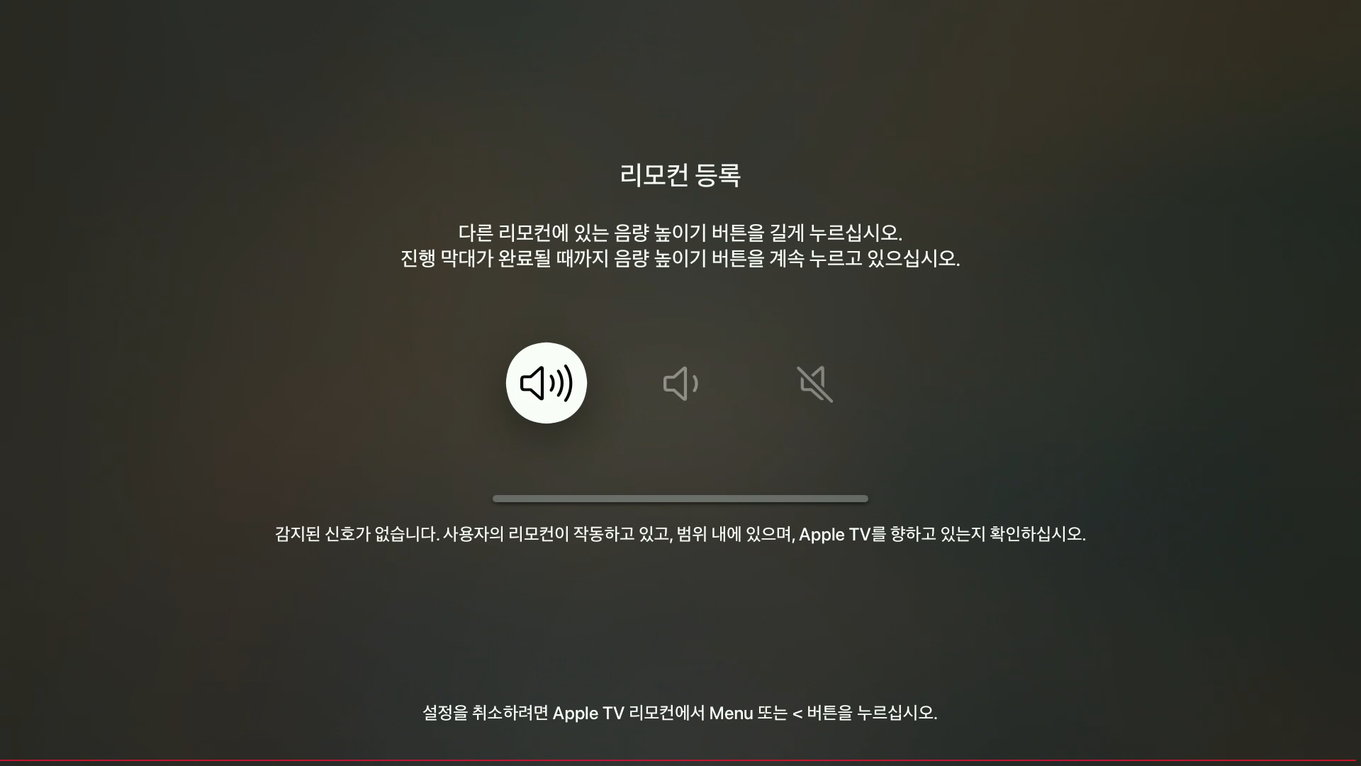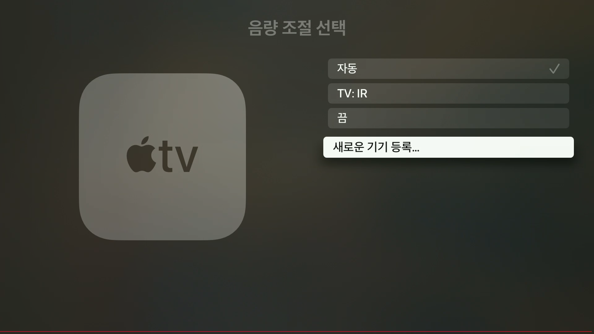 ① Apple TV ‘설정’ 진입 > ‘리모컨 및 기기’ > ‘음량 조절’ > ‘새로운 기기 등록’