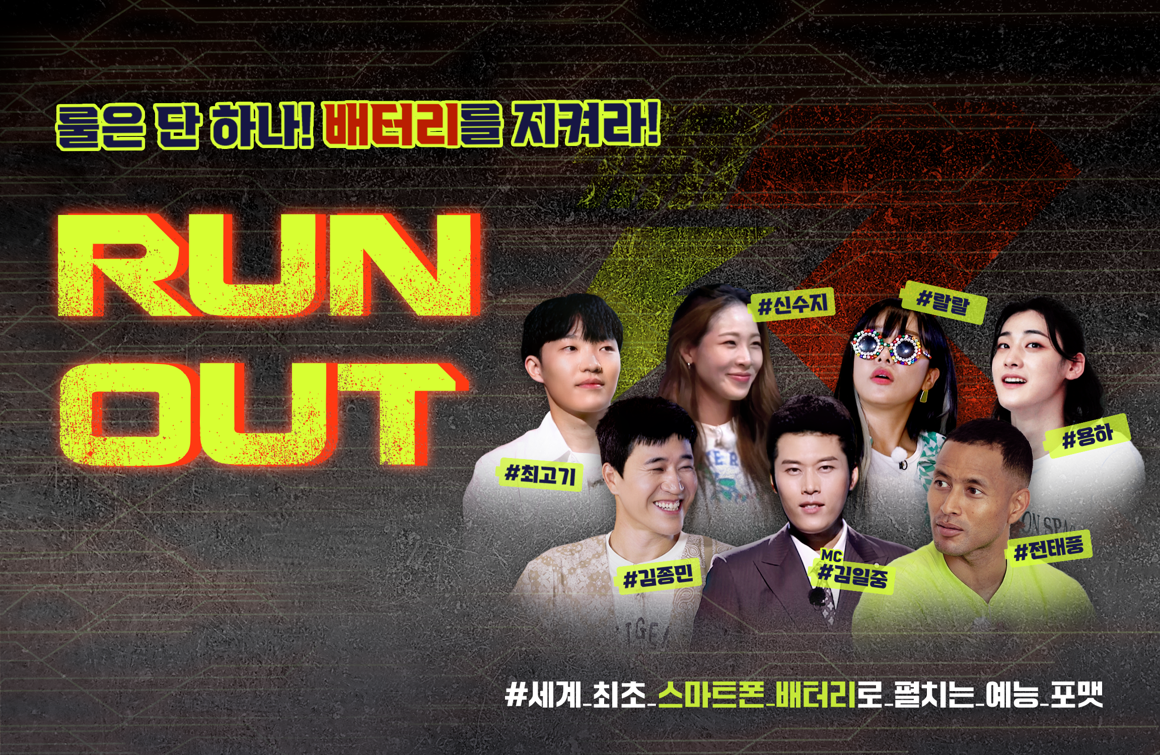 <RUNOUT>은 스마트폰과 뗄 수 없는 사이가 된 현대인들을 풍자적으로 겨냥한 새로운 서바이벌 예능입니다.