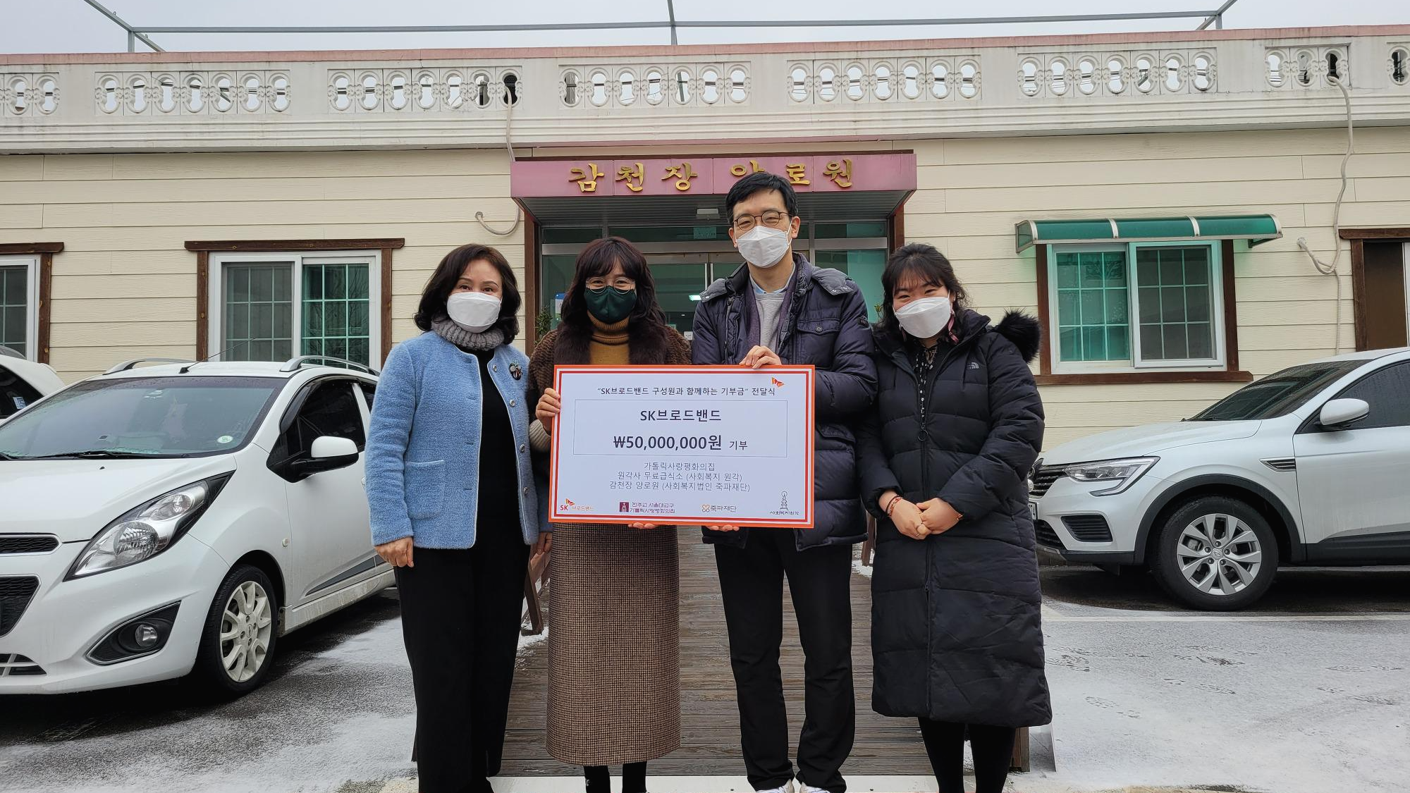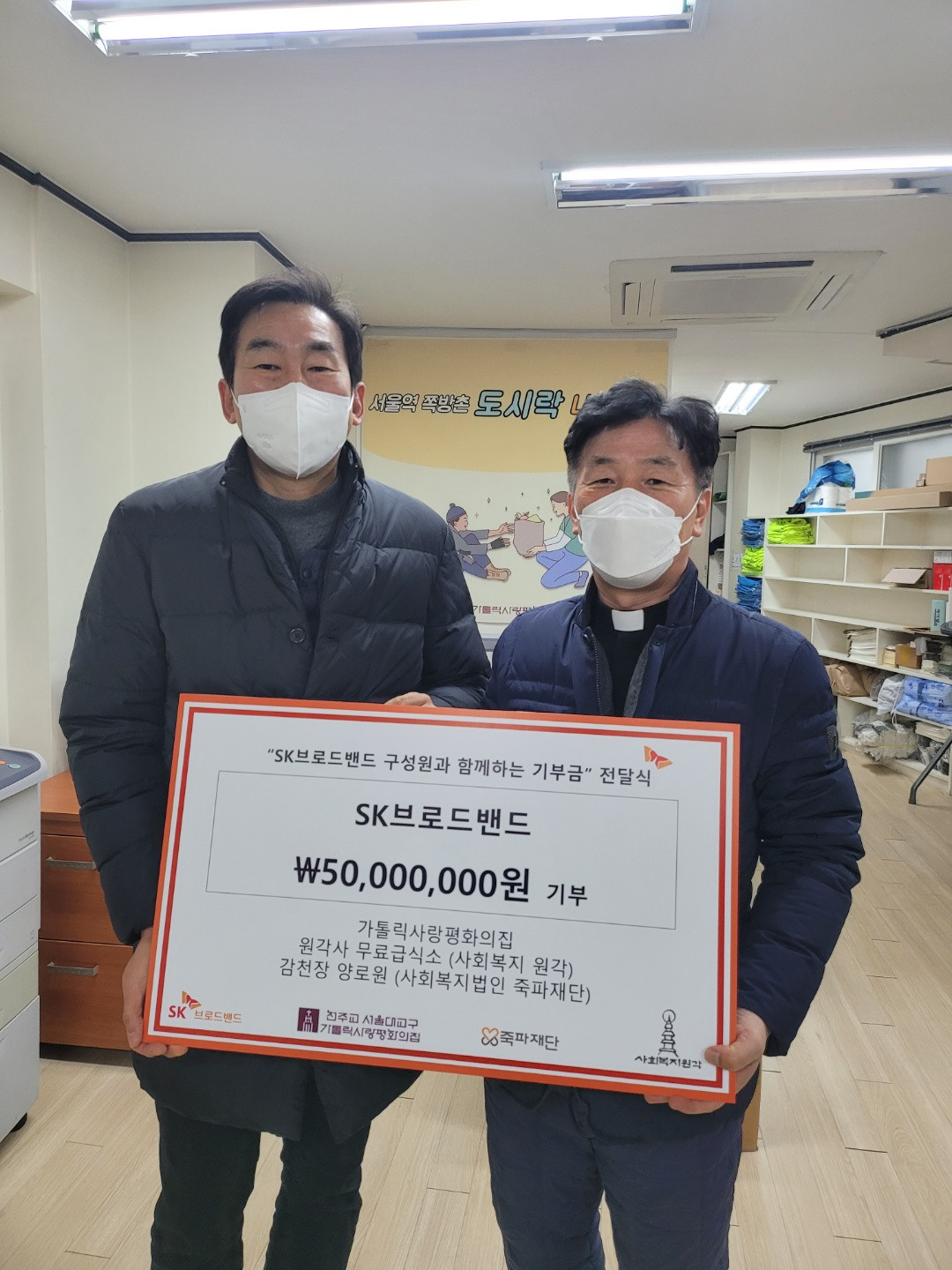 이번 기부금은 코로나19 장기화와 겨우살이로 이중고를 겪는 이웃을 돕기 위해 SK브로드밴드 구성원이 자발적으로 참여하고, 회사의 지원금을 더해 모금됐다.