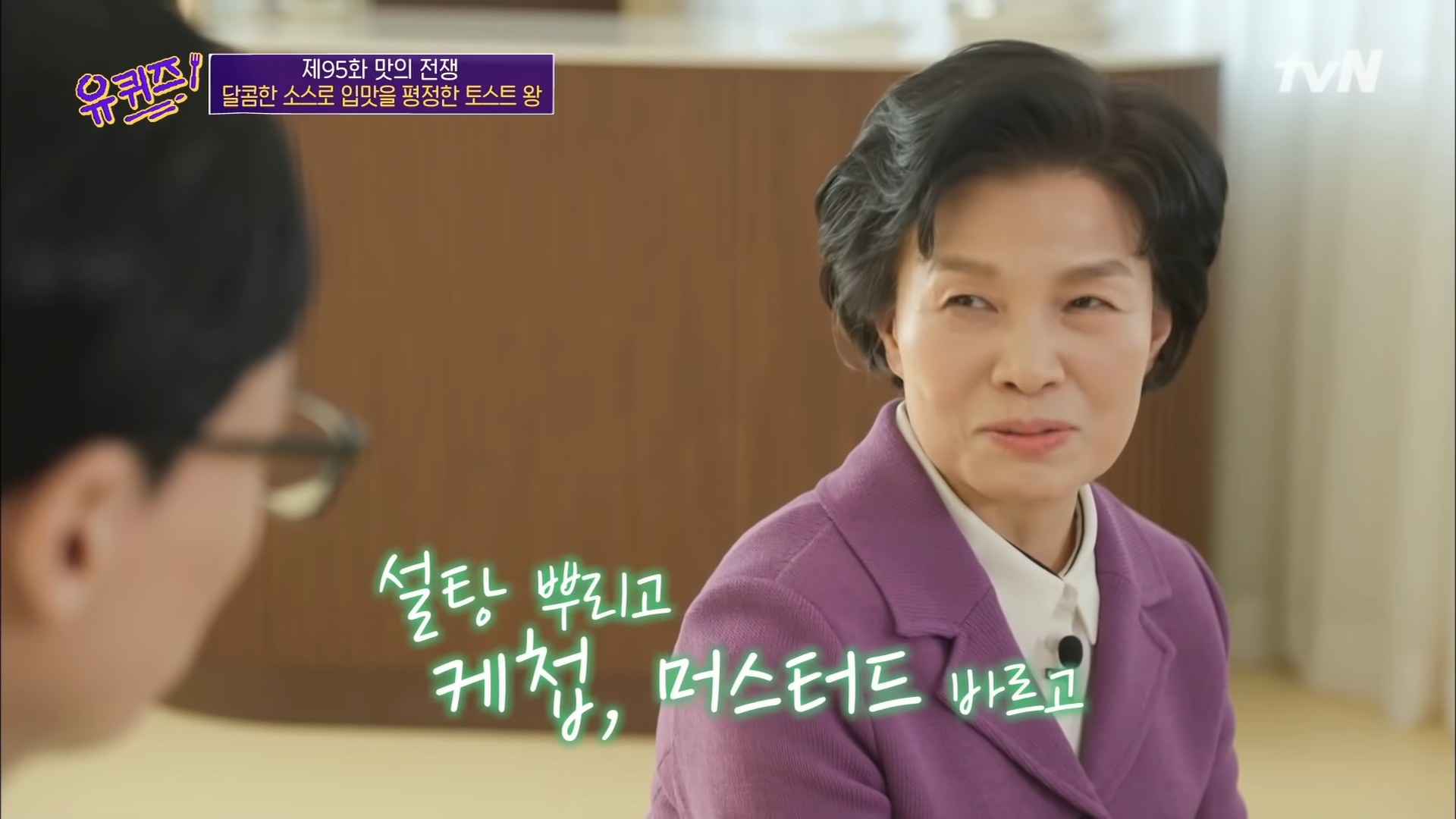 리모컨의 마이크 버튼 누르고 ▶ “유 퀴즈 온 더 블럭 95회 찾아줘~”