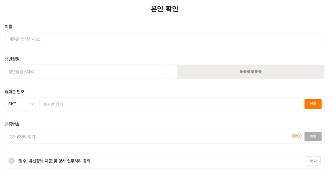 우선 ‘이사 신청’ 클릭 후 나타난 팝업창에서 본인 확인 절차와 필수 동의 사항을 확인해주세요.