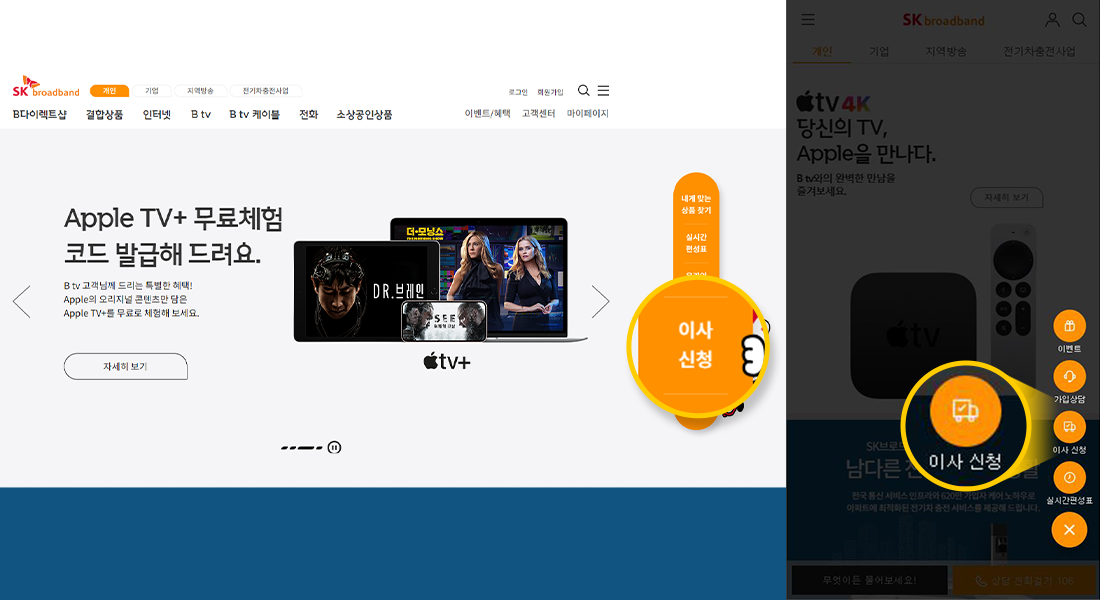‘간편한 이사 신청’은 PC와 모바일 모두 SK브로드밴드 홈페이지에서 신청할 수 있는데요.