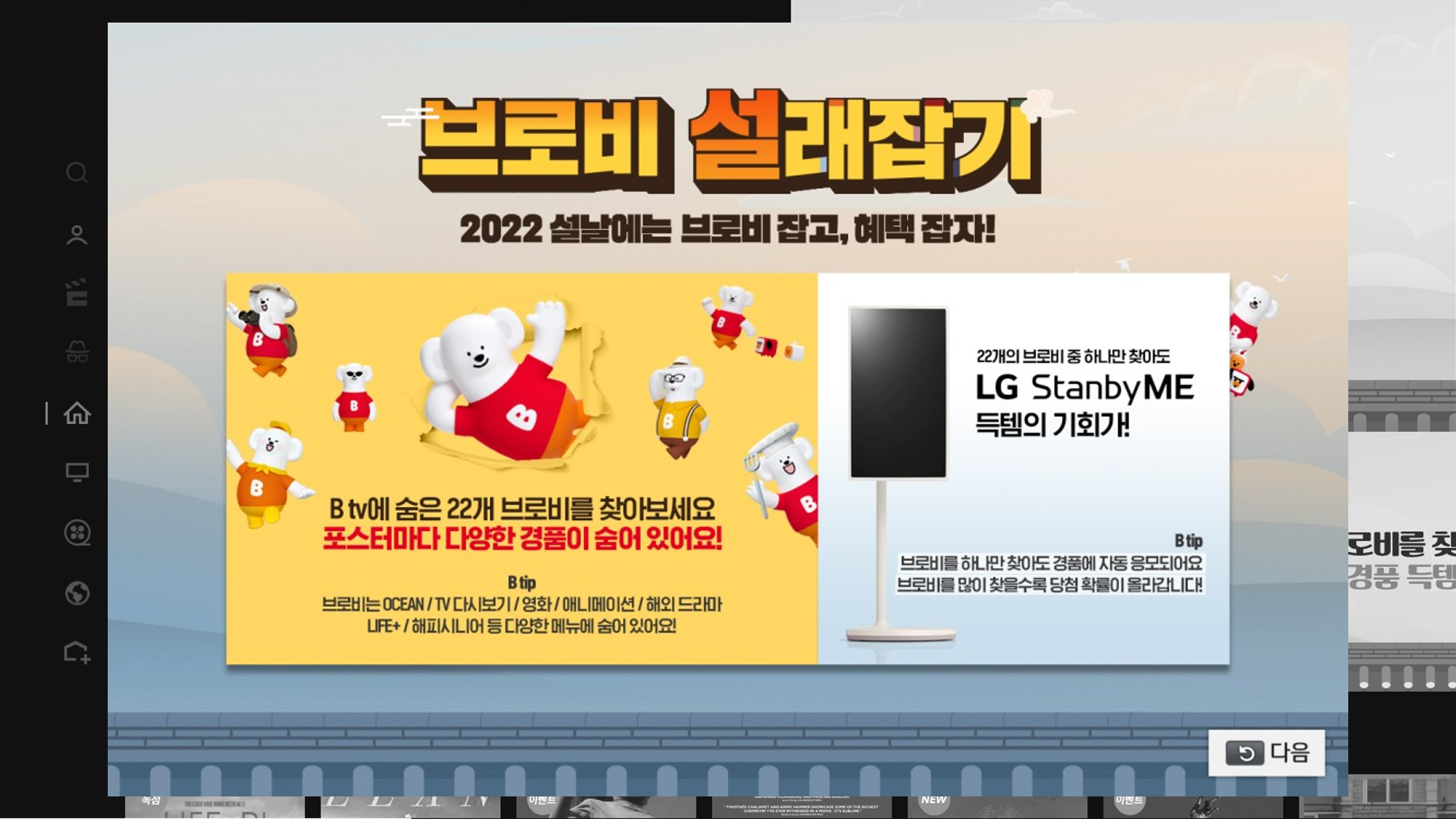 - B tv 메뉴 곳곳에 숨어있는 브로비 포스터를 찾으면 다양한 선물 증정