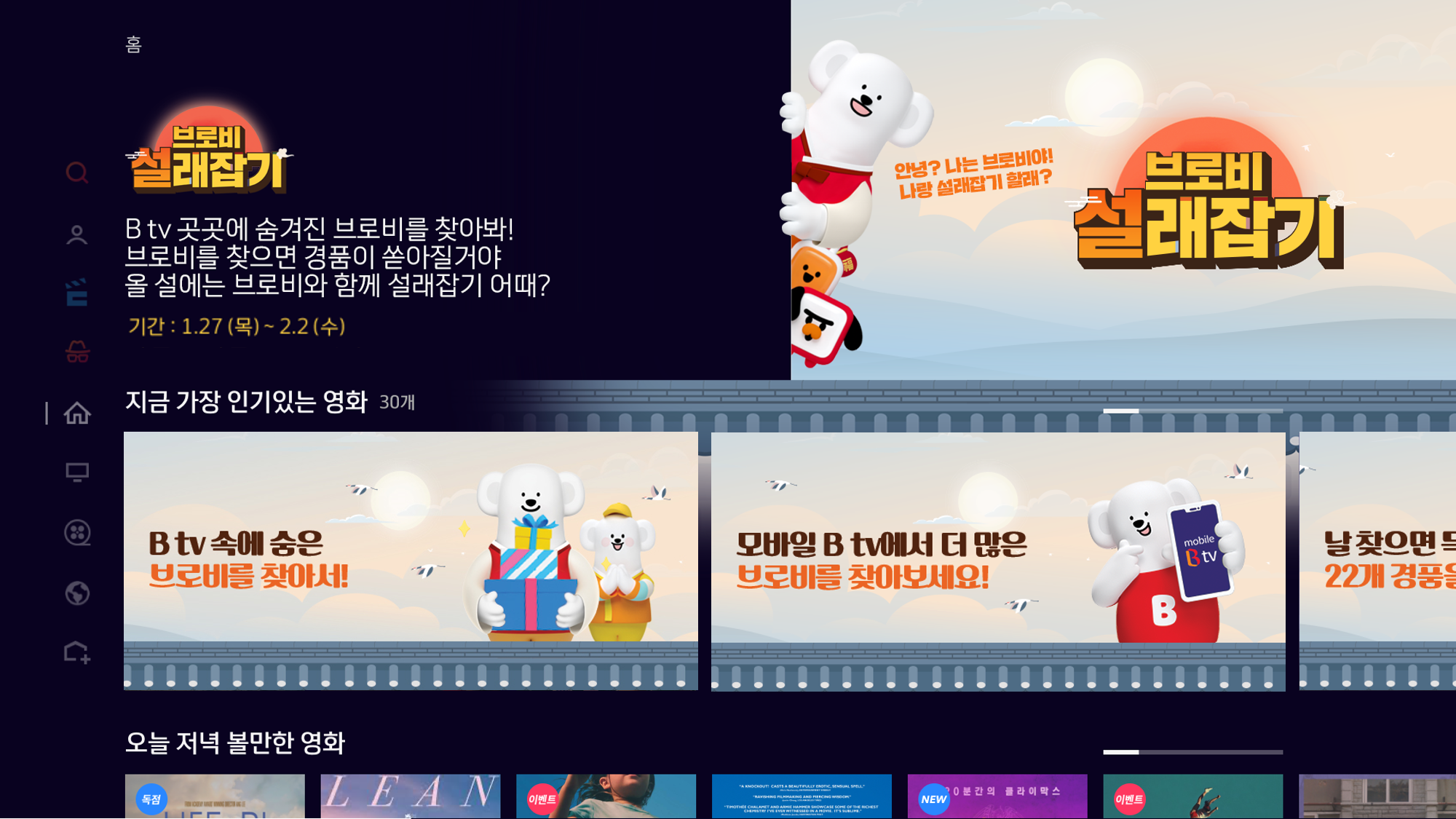 - B tv 메뉴 곳곳에 숨어있는 브로비 포스터를 찾으면 다양한 선물 증정