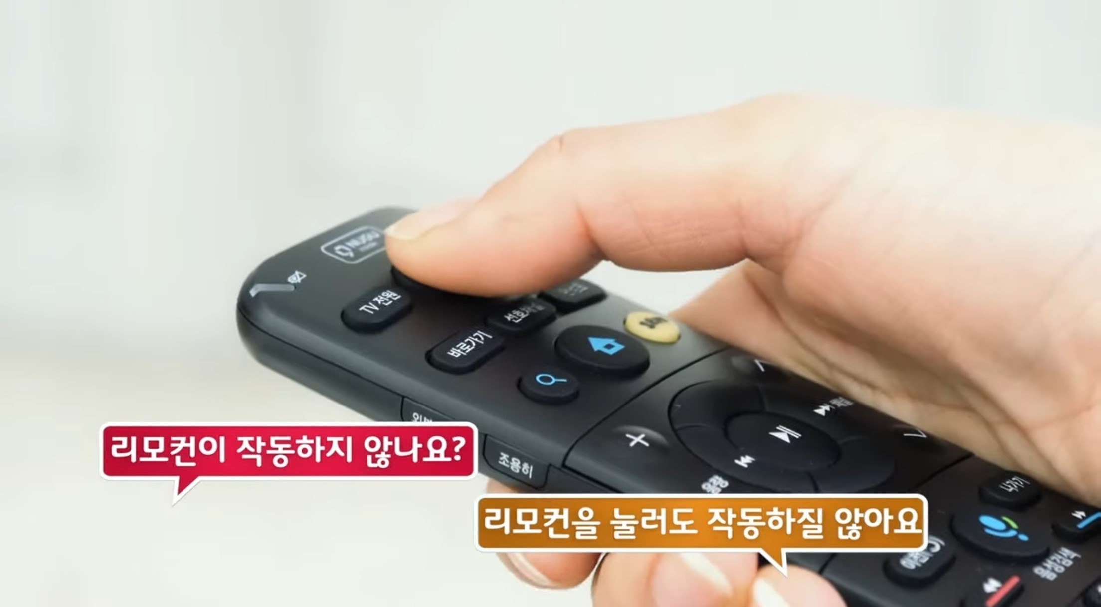 먼저 리모컨 위쪽 배터리 램프가 정상인지 확인해주세요.