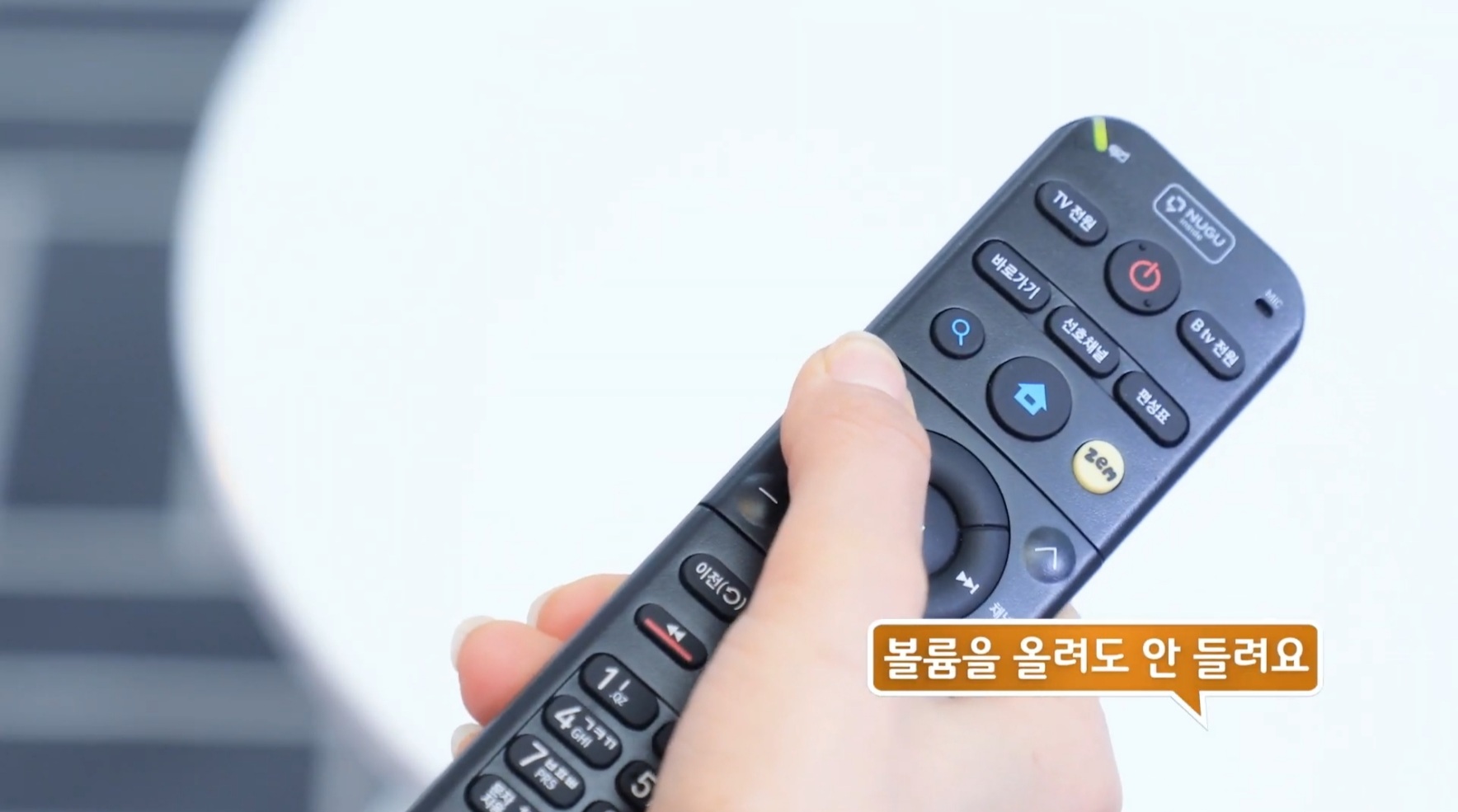 TV에서 소리가 들리지 않는다면 먼저 리모컨 상단의 'B tv 음량' 버튼을 눌러 볼륨이 '0'인지 확인 합니다.