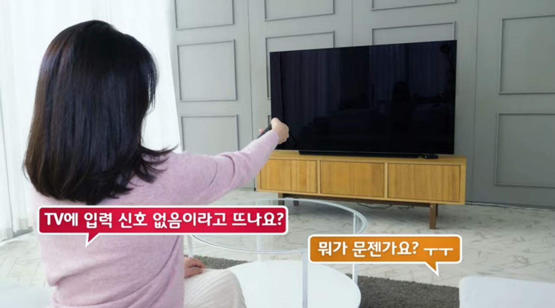 그래도 해결되지 않는다면 리모컨의 외부입력 버튼을 눌러 입력신호를 변경해보세요.