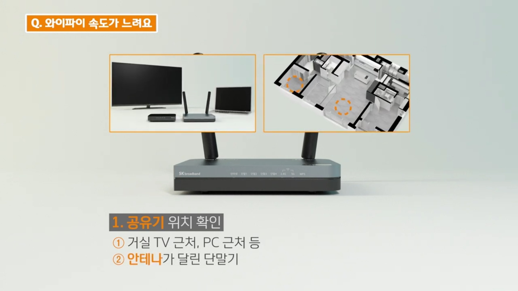 먼저 공유기의 위치를 확인해 주세요.
