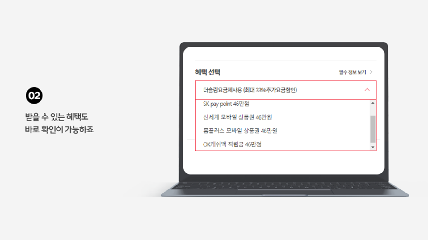 여기에 포인트/상품권 혜택과 최대 33% 추가요금할인 중에서 혜택을 선택하면 끝!