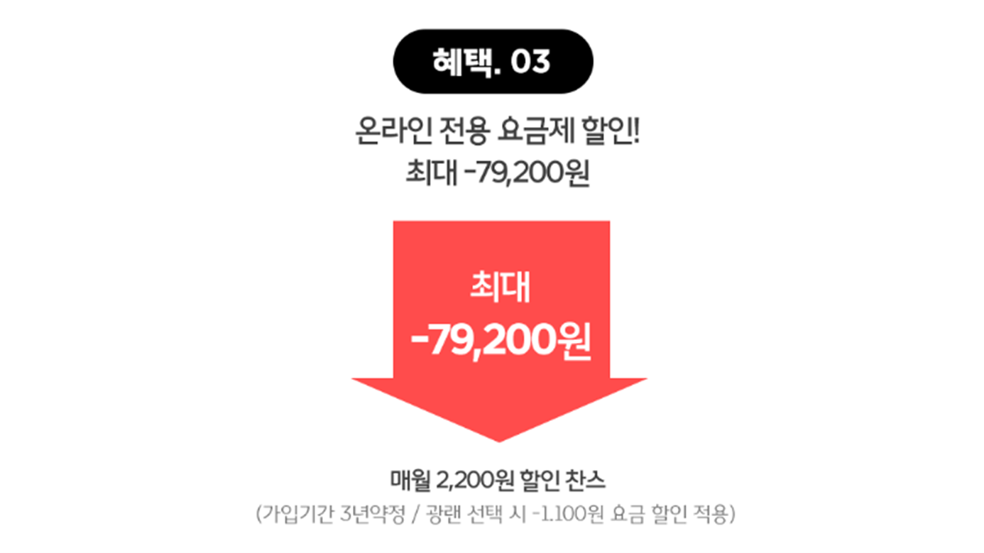 (가입기간 3년약정 / 광랜 선택 시 -1,100원 요금 할인 적용)