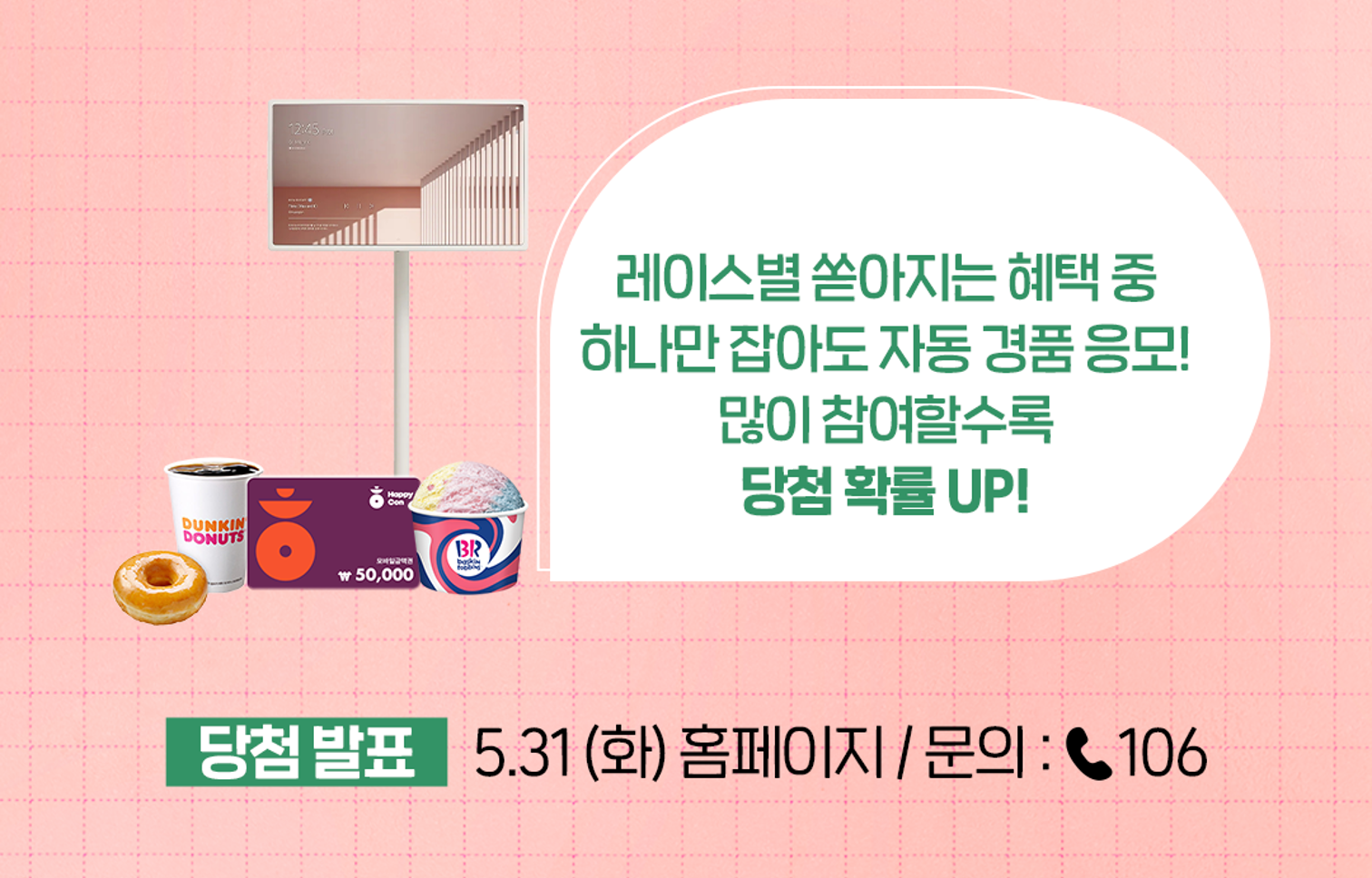 주차별 레이스마다 쏟아지는 혜택은 물론 하나에만 참여해도 빅경품에 자동 응모된다고 해요.