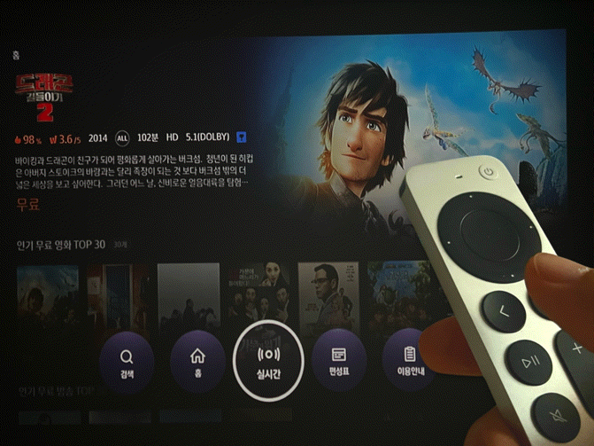 유일한 방법은 SK브로드밴드 인터넷과 B tv 결합상품에 가입해야만 합니다. Apple이 SK브로드밴드와 독점 제휴를 하고 있어서 Apple TV 앱 내에서 실시간 방송을 볼 수 있는 유일한 방법입니다. 본방사수의 묘미는 놓칠 수 없죠.