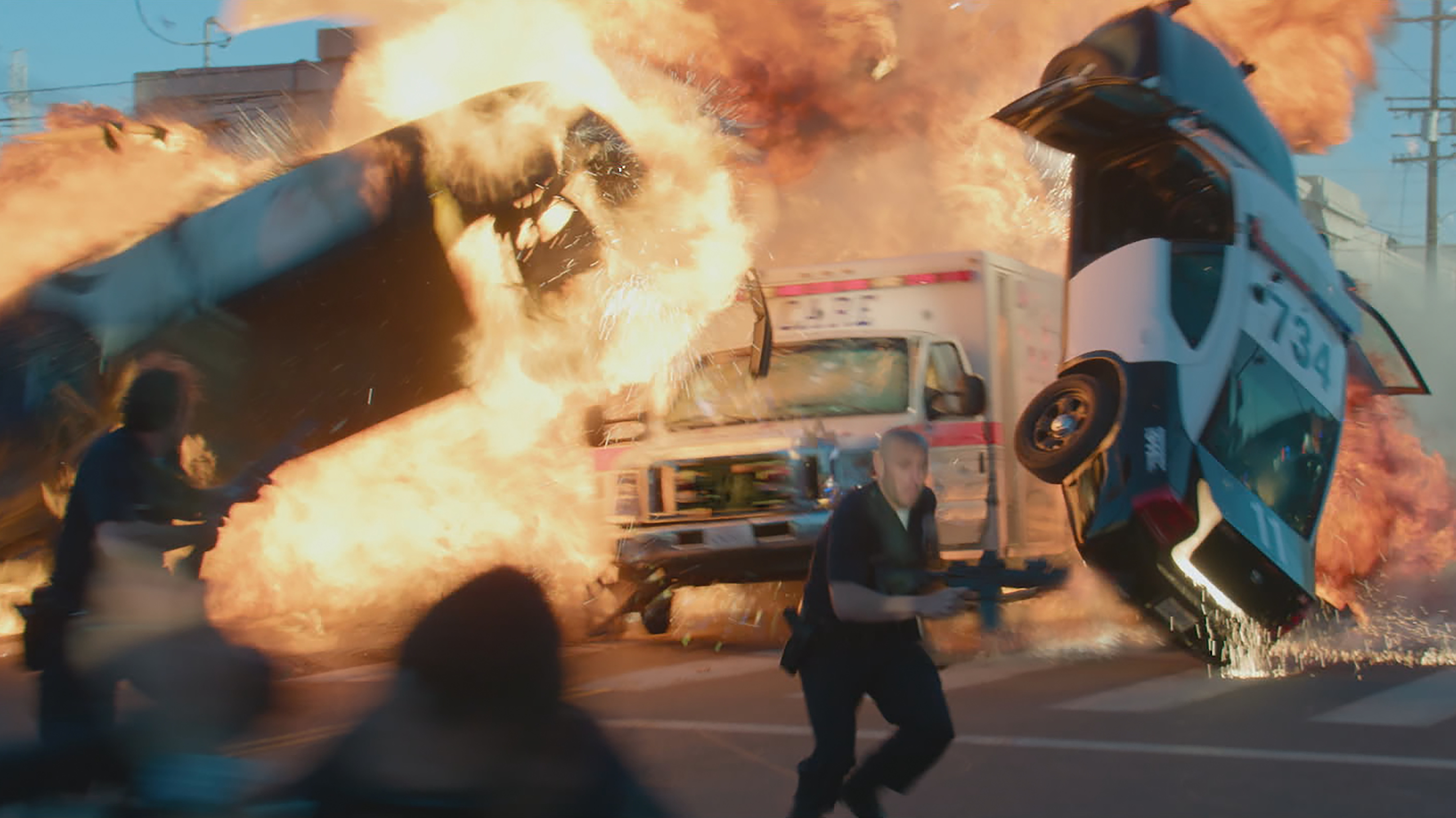 ‘대니’와 ‘월’은 구급대원 '캠'과 부상당한 경찰이 탑승한 앰뷸런스를 탈취합니다.