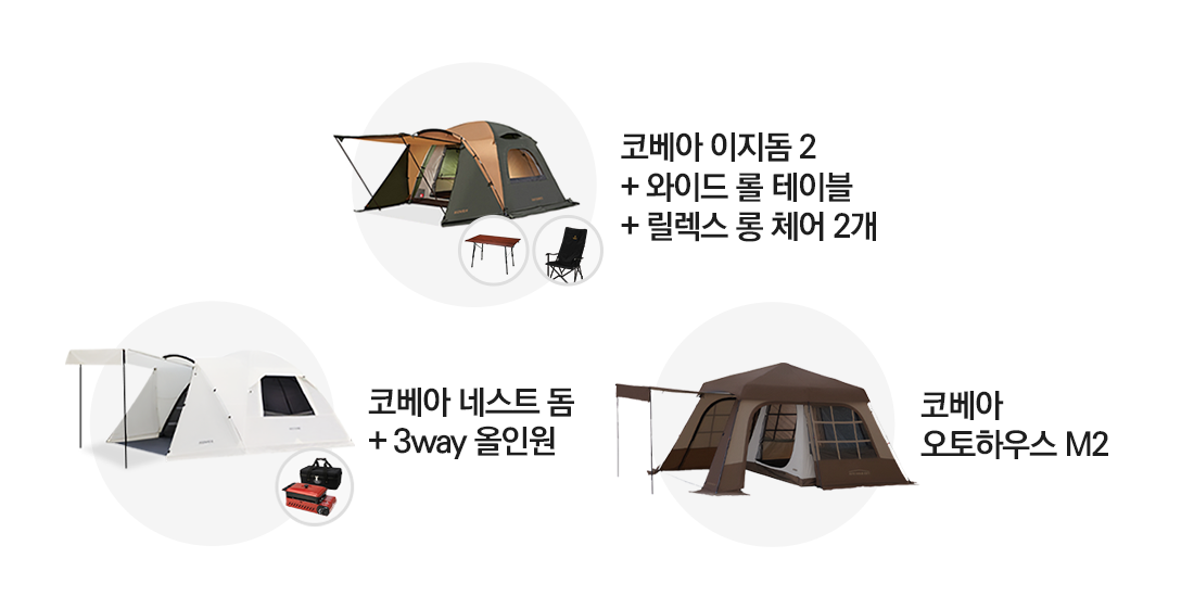 1. 코베아 이지돔 2 + 와이드 롤 테이블 + 릴렉스 롱 체어 2개