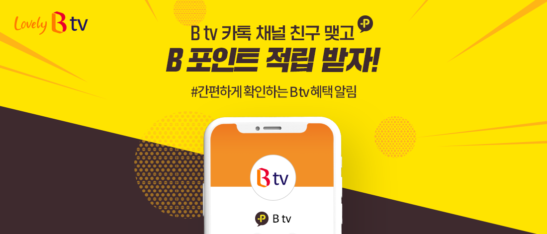 B포인트 적립하시고 B tv 공식 카카오톡 채널에서 다양한 혜택 알림도 받아보세요!