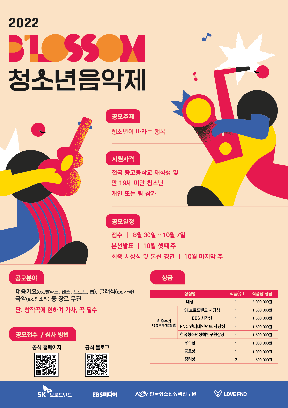 SK브로드밴드, EBS미디어, FNC Entertainment, 한국청소년정책연구원이 공동 주최하는 ‘2022 블러썸 청소년음악제’!