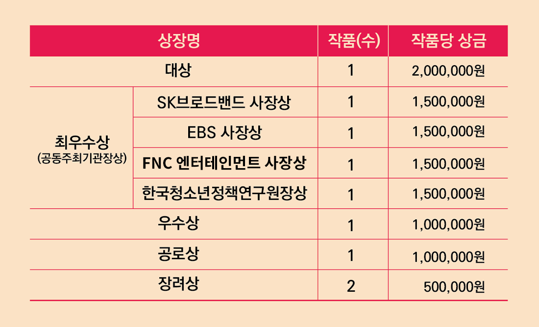 작품당 최대 200만 원의 상금이 지급되니, 청소년 여러분의 많은 참여를 기다릴게요!